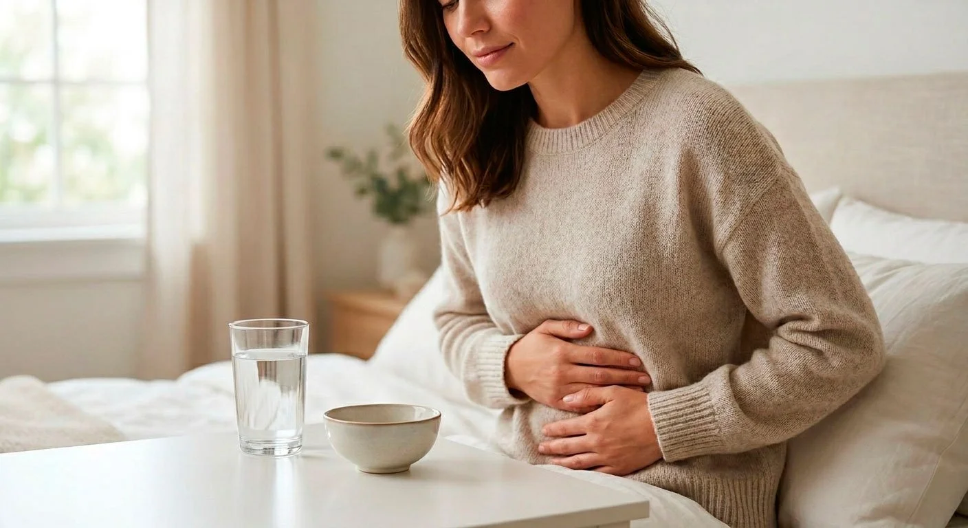 Bijvoorbeeld water, thee of bouillon. Als je overgeeft, kun je steeds kleine slokjes nemen.Eet als je trek hebt.